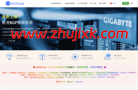 UFOCloud(UFOVPS)发布了双十二超级特惠促销活动,即日起至12月15日期间,新老用户充充300返150,充500返300,充1000返1000,充3000返3000,充5000返5000,每个用户可参与2次。同时全场月付9.5折、季付9折、半年付8.5折、年付8折、两年付7.5折、三年付7折,无码直购,续费同价,可用于购买香港VPS、日本VPS和美国VPS等,可选CN2 GIA线路;新用户购买任意服务器可返30元到余额(限1次)。